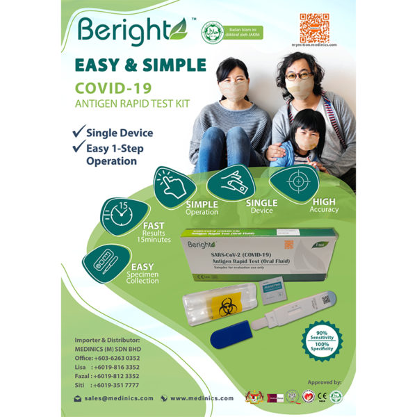 Beright™ SARS-CoV-2 Antigen Rapid Test (Lollipop) allows the self-testing of Covid-19 antigen at home or office without needing to be tested at a healthcare facility. The test process is the easiest among all the Covid-19 RTK Antigen tests on the market, making it an ideal choice for children and senior citizens.