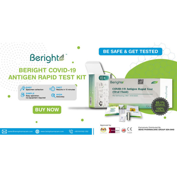 Beright™ COVID-19 Antigen Rapid Test (Oral Fluid) is a single-use test kit intended to detect the novel coronavirus SARS-CoV-2 that causes COVID-19 in human oral fluid. This test is designed for home use with self-collected oral fluid samples from symptomatic individuals who are suspected of being infected with COVID-19.